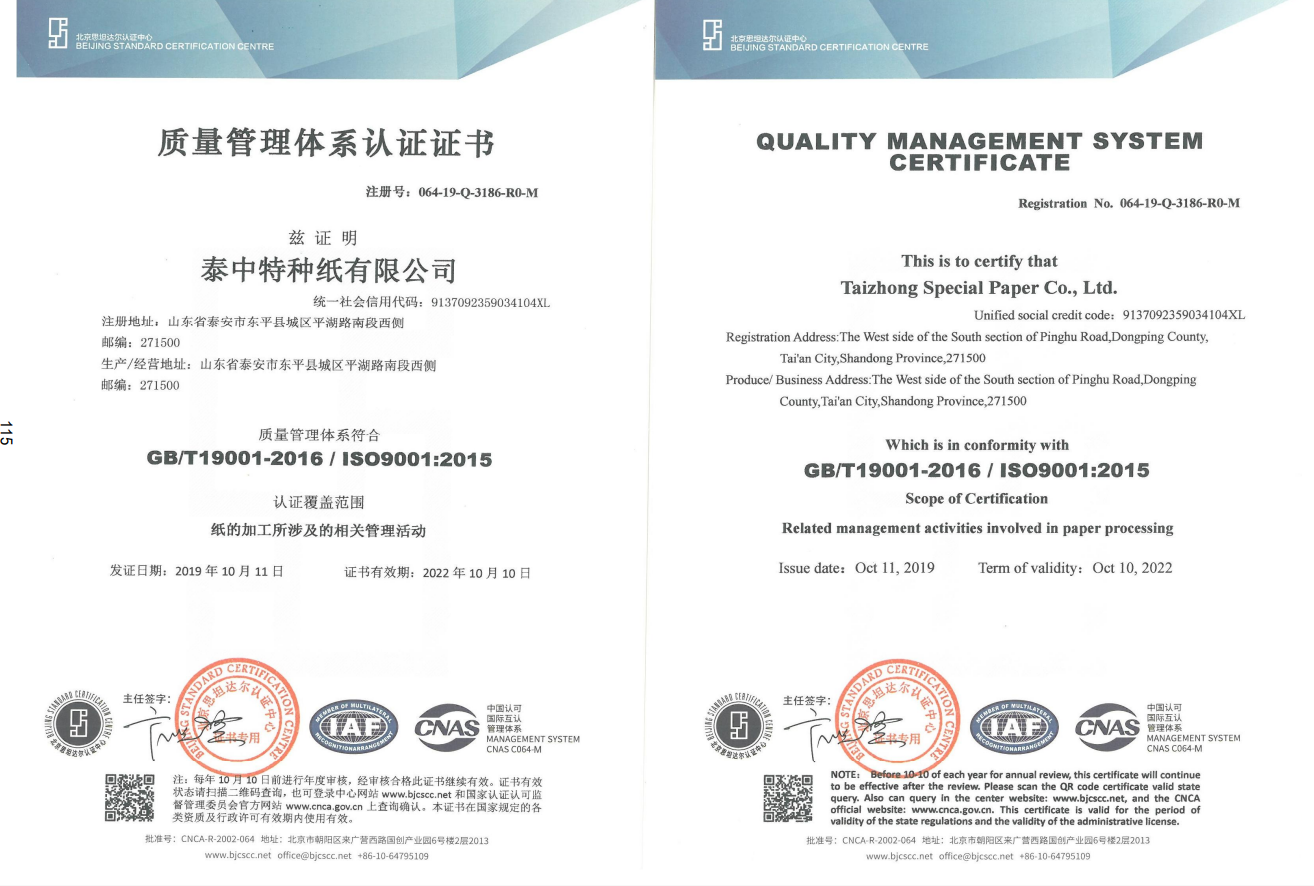 2021 年获得泰安市生态环境局排污许可证 管理体系认证证书